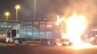 คนขับรถบรรทุกร้องไห้ หลังรถบรรทุกขนไก่กว่า 5,000 ตัว ไฟไหม้