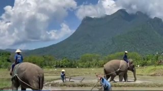 เมื่อช้างตกงาน! เลยมารับจ้างไถนาแทนควาย