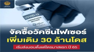 จัดซื้อวัคซีนไฟเซอร์เพิ่มเติม 30 ล้านโดส เริ่มส่งมอบตั้งแต่ไตรมาสแรก ปี 65