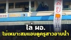 เฟซบุ๊ก "เจ๊ม้อยv plus" โพสต์ข้อความรายงานเหตุการณ์ นักเรียนของโรงเรียนแห่งหนึ่งในจังหวัดบึงกาฬ รวมตัวประท้วงขับไล่ผู้อำนวยการโรงเรียนที่มีพฤติกรรมไม่เหมาะสมแอบดูครูสาวอาบน้ำ เพจดังกล่าวเปิดเผยว่า เรื่องราวนี้เกิดขึ้นเมื่อวันท่ี 20 ม.ค.ที่ผ่านมา . ผู้อำนวยการรายนี้ได้แอบดูครูผู้หญิงอาบน้ำบริเวณหลังห้องพัก แต่ทำทีเป็นรดน้ำผัก ซึ่งตอนนั้นเป็นเวลาประมาณ 2 ทุ่ม ขณะที่ครูผู้หญิงก็ได้ยินเสียงดังมาจากหล.. ดูเพิ่ม