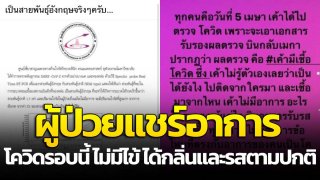 ผู้ป่วยแชร์อาการ #โควิด รอบนี้ ไม่มีไข้ ได้กลิ่นและรสตามปกติ