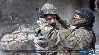 เว็บไซต์รัสเซียทูเดย์รายงานว่า กลุ่มรัฐอิสลามหรือไอเอสเปลี่ยนกระบวนวิธีใหม่ในการประหารชีวิตทหารซีเรียที่จับเป็นมาได้ โดยการผูกระเบิดยัดเข้าไปในหมวก หัว และมือของทหารซีเรีย พร้อมกับเอาไม้วางนามตัวทหาร ใช้เชือก หรือลวดมัดทั้งตัวของทหาร และจับห้อยลงมาจากตึกจากนั้นก็กดระเบิด การประหารชีวิตทหารซีเรียในลักษณะดังกล่าว เผยแพร่ทางเว็บไซต์โฆษณาชวนเชื่อของกลุ่มไอเอส และเชื่อว่าเกิดขึ้นจากค่ายยาร์มุก ซึ่งเดิม.. ดูเพิ่ม
