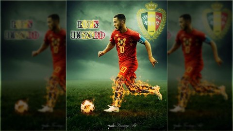 สอนแต่งภาพด้วย Photoshop : สอนแต่งภาพเอฟเฟ็กต์ไฟติดที่ขาของ Eden Hazard