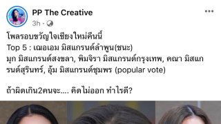 Content Creator คุณเปาะเปี๊ยะได้ออกมาเผย โพลรอบขวัญใจเชียงใหม่ค่ำคืนนี้ โพลรอบขวัญใจเชียงใหม่คืนนี้Top 5 : เฌอเอม มิสแกรนด์ลำพูน(ชนะ)มุก มิสแกรนด์สงขลา, พิมจิรา มิสแกรนด์กรุงเทพ, คณา มิสแกรนด์สุรินทร์, อุ้ม มิสแกรนด์ชุมพร (popular vote) ถ้าผิดเกิน2คนจะ…. คิดไม่ออก ทำไรดี? เอาเป็นว่า เฌอเอม มงแน่ !! ดูเพิ่ม