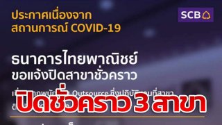 'ไทยพาณิชย์' ประกาศปิดทำการชั่วคราว 3 สาขา หลังพบ พนักงานติดโควิดหรืออยู่ใกล้ชิดผู้ป่วย