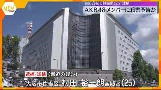 ชายว่างงานวัย 25 ปี ถูกจับและถูกส่งตัวไปที่สำนักงานอัยการ ฐานข่มขู่ฆ่า สมาชิกหญิง ของวงไอดอลยอดนิยมของโลก AKB48 เจ้าหน้าที่ตำรวจ กล่าวว่า "ผู้ต้องหามีชื่อว่า "ยูอิจิโระ มุราตะ" เขาอาศัยอยู่ในเขตสุมิโยชิ เมืองโอซาก้า เขาได้ทำการข่มขู่นักร้องไอดอลสาว วัย 20 ปีจากวง AKB48 ทางออนไลน์จำนวน 3 ครั้ง เช่น "ฉันจะทำร้ายเธอ ฆ่าเธอ" และ "สังหารหมู่ผู้คนที่อยู่รอบข้างคุณ ที่สถานีชินโอซาก้า" และ "ฉันจะฆ่าครอบค.. ดูเพิ่ม