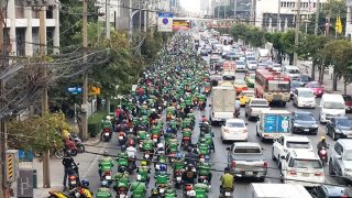 กลุ่มชาวแกร๊บรวมตัวเพื่อไปยื่นหนังสือเรียกร้องแก้ปัญหาที่เกิดผลกระทบกับพาร์ทเนอร์ทั้งประเทศ ทุกสายงานของแกร๊บทั้งหมด