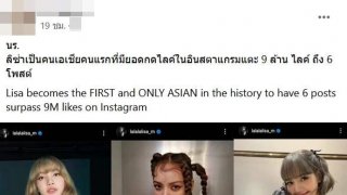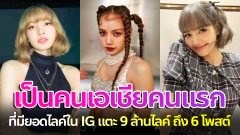 "ลิซ่า BLACKPINK" เป็นคนเอเชียคนแรก ที่มียอดไลค์ใน IG แตะ 9 ล้านไลค์ ถึง 6 โพสต์