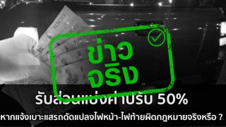 ข่าวจริง 💚 แจ้งเบาะแสรถปรับแต่งไฟหน้า-ไฟท้ายผิดกฎหมาย ได้ส่วนแบ่ง 50% ของค่าปรับ