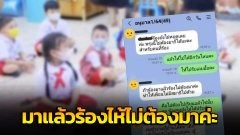 ร้องไห้ก็ไม่ต้องมาเรียน!? มีคนโพสต์ภาพข้อความจากกลุ่มไลน์ผู้ปกครองนักเรียนชั้น อ.1 รร. แห่งหนึ่งในพิษณุโลก เป็นข้อความจากครูประจำชั้นที่แนะนำผู้ปกครองหลังเด็กร้องไห้ไม่หยุดที่รร. โดยข้อความระบุว่า.. “ร้องไห้ไม่หยุดเลยค่ะ พรุ่งนี้ไม่ต้องมาก็ได้นะคะ” ถ้าน้องมาแล้วร้อง ไม่ต้องมาค่ะ ทำให้เพื่อนไม่มีสมาธิไปด้วย ผู้ปกครองจึงให้เหตุผลไปว่า เด็กคงยังปรับตัวไม่ได้ จะขอให้ไปโรงเรียนอีก แต่ครูยื.. ดูเพิ่ม