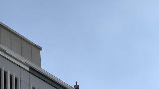 เจ้าหน้าที่เข้าเกลี้ยกล่อม ชายปริศนาจ่อกระโดดตึก!...