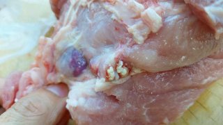 ถ้าเจอสิ่งที่เป็นแบบนี้ในเนื้อหมู ควรจะหั่นทิ้งเน่อ กินไปไม่ค่อยดี มีเชื้อโรคเยอะ เพราะว่ามันคือ ฝีในเนื้อหมูครับ ควรทิ้งทั้งชิ้นครับ เพราะผ่าเปิดแล้ว เชื้อออกมาปนเปื้อนเนื้อทั้งหมดแล้วครับ เชื้อบางตัวอันตรายเวลาเข้าบาดแผลคนปรุงก่อนเนื้อจะสุก ถ้าแบ่งเก็บไว้ก็ปนเปื้อนชิ้นอื่นได้อีก ซึ่งเราก็ไม่แน่ใจว่า เชื้อที่ปนเปื้อนคืออะไร จะมีอันตรายมากแค่ไหน ดังนั้น ถ้าเป็นไปได้ทิ้งไปเสียจะดีกว่าครับ ขอบคุณภา.. ดูเพิ่ม