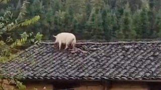 สุดทึ่ง! หมูตกใจ กระโดดขึ้นไปบนหลังคาบ้าน 2 ชั้น🐖