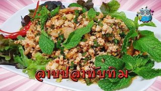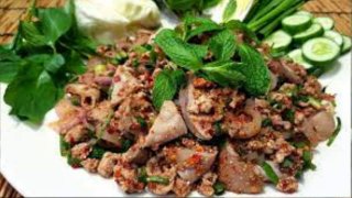 ลาบหมูก็เป็นอีกหนึ่งเมนูร้านส้มตำยอดนิยมเช่นกันครับ ใครสนใจอยากลองทำกินเองที่บ้าน ผมขอแนะนำสูตรของที่บ้านของคนเขียนให้ลองไปทำกินดูนะครับสูตรนี้เพิ่มตับหมูเคล้ากับหมูสับและเครื่องลาบด้วย กินกับผักเคียงอิ่มแปล้ ส่วนผสม ลาบหมู • หมูสับ 100 กรัม (ผสมน้ำเปล่า 7 ช้อนโต๊ะ น้ำปลา 2 ช้อนชา แล้วนำไปรวนพอสุก ตักใส่ชาม พักไว้) • ตับหมูต้ม 50 กรัม (ต้มพอสุกนุ่ม ไม่แข็งแห้ง) • หอมแดงซอย 3 ช้อนโต.. ดูเพิ่ม