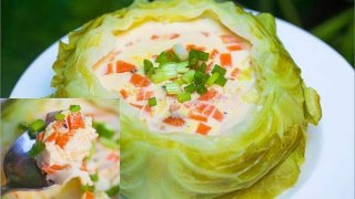 แจกสูตร!ไข่ตุ๋นกะหล่ำปลี เมนูงายๆที่แสนอร่อย 👉ส่วนผสม ไข่ตุ๋นกะหล่ำปลี 1.กะหล่ำปลี 1 หัว 2.ไข่ไก่หรือไข่เป็ด (เบอร์ 0) จำนวน 2 ฟอง 3.น้ำซุป 5 ช้อนโต๊ะ 4.น้ำปลา 1 ช้อนชา 5.ซีอิ๊วขาว 1 ช้อนชา 6.แครอตหั่นเป็นชิ้นเล็ก ๆ (ใส่หรือไม่ใส่ก็ได้) ปริมาณตามชอบ 7.ต้นหอมซอย (สำหรับโรยหน้า) 8.พริกไทย ตามชอบ (ใส่หรือไม่ใส่ก็ได้) 👉วิธีทำไข่ตุ๋นกะหล่ำปลี 1.แหวกกะหล่ำปลีให้เป็นช่องตรงกลางสำหรับใส่ไข่ลงไป กะดูว่าปริ.. ดูเพิ่ม