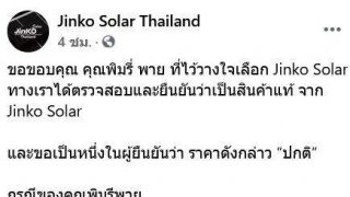 ขอขอบคุณ คุณพิมรี่ พาย ที่ไว้วางใจเลือก Jinko Solarทางเราได้ตรวจสอบและยืนยันว่าเป็นสินค้าแท้ จาก Jinko Solarและขอเป็นหนึ่งในผู้ยืนยันว่า ราคาดังกล่าว “ปกติ”กรณีของคุณพิมรีพาย ติดตั้งระบบออฟกริด (Off Grid System) 7.2กิโลวัตต์ ในราคา 350,000บาทหากอิงตามราคาของผู้โพส 5,200x18=93,600บาทจะเหลือส่วนต่างสำหรับ อุปกรณ์อื่นๆ ถึง 256,400 บาทแบตเตอรี่ 7.2กิโลวัตต์ 70,000-120,000 บาท (ตามแต่ชนิด).. ดูเพิ่ม