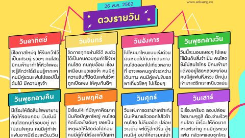 คนวันพุธกลางคืนขยันสุดๆ เพราะวันหยุดแท้ๆ จะยังแอบรับจ็อบนอกมาทำ เรื่องรักของคนวันพฤหัสโดยเฉพาะคนมีคู่ ระวังมือที่สามนะ ส่วนคนวันอื่นๆไม่ต้องกังวลใจไป มาเช็กดวงวันนี้ (2 พ.ย. 62) กันเล้ยยยย ดูเพิ่ม