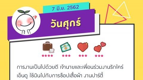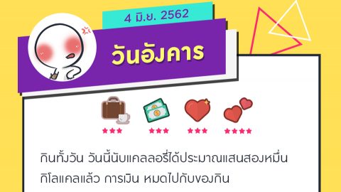 ช็คดวงรายวันที่ 4 มิ.ย. 62เตือน! คนมีคู่ ช่วงนี้แฟนของคุณจะเข้าสู่สายมู....มูทอด มูปิ้ง มูกระทะ เรียกว่าเป็นช่วงที่เราจะอ้วนไปด้วยกันน้าาา ดูเพิ่ม