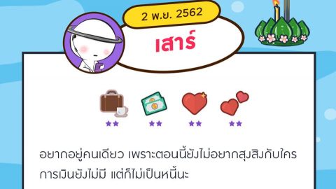 มาเช็กดวงวันนี้ 2 พ.ย. 62 กันเถอะะะะ