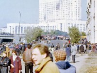 ภาพถ่ายในทำเนียบขาว โซเวียตรัสเซีย ถูกโจมตีเมื่อ 4 ตุลาคม 1993 วิกฤตการณ์รัฐธรรมนูญรัสเซีย: กองทัพรัสเซียส่งรถถังเข้าระดมยิงทำเนียบขาว อาคารรัฐสภาในกรุงมอสโก ขณะเกิดการชุมนุมต่อต้านประธานาธิบดี บอริส เยลซิน นอกอาคาร ดูเพิ่ม