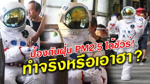 โซเชียลแชร์สนั่น พบบุคคลหนึ่งสวมชุดอวกาศ ราวกับจะไปทำภารกิจนอกโลกแต่นั่งรถเมล์ เดินทางออกจากบ้านในเมืองกรุง ไม่รู้ว่าจะไปไหน ชาวเน็ตแซว คาดใส่เพื่อป้องกันฝุ่นละออง PM 2.5 แน่ๆ หน้ากาก N 95 ที่ว่าแน่ แพ้ชุดอวกาศนี้ไปเลย ทั้งนี้ยังไม่ทราบแน่ชัดว่าบุคคลในภาพนี้สวมชุดนี้เพราะเหตุใด แต่กลายเป็นภาพ ขบขันบนเฟซบุ๊ก และถูกแชร์เป็นอย่างมากในขณะนี้ ดูเพิ่ม