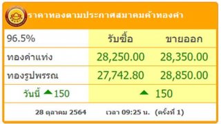 วันนี้ราคาทอง ล่าสุดเปิดตลาดเช้า ปรับเพิ่มขึ้น 150 บาท (28 ต.ค.64)