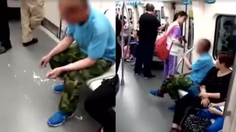 ลุงนั่งปอกกระเทียมบนรถไฟใต้ดิน นร.หญิงก้มลงเก็บไปทิ้ง นิ่งๆ เท่มาก