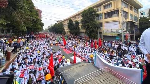 หลังจากทหารพม่าสลายการชุมนุมด้วยการใช้อาวุธและกระสุนจริงยิงประชาชน จนเป็นเหตุให้มีการเสียชีวิต และบาดเจ็บเป็นจำนวนมากเมื่อวาน วันนี้ (22/2/2021) หรือที่เรียกกันว่า 2 ห้าตัว จะเกิดการเดินขบวนชุมนุมต่อต้านเผด็จการทหารยึดอำนาจขึ้น ในสหภาพเมียนมาทั่วทั้งแผ่นดิน ผู้ประท้วงทั่วประเทศนัดรวมพลครั้งใหญ่ ทหารกะเหรี่ยง KNU แสดงบทพระเอกให้ทหารพม่าดู โดยการคุ้มกันขบวนผู้ชุมนุม เดินทางเข้ามาเมียวดี ตางข้ามอำเภ.. ดูเพิ่ม