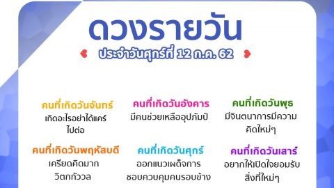 ดวงรายวันประจำวันที่ 12 ก.ค. 2562
