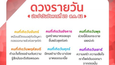ดวงรายวันประจำวันที่ 20 สิงหาคม 2562