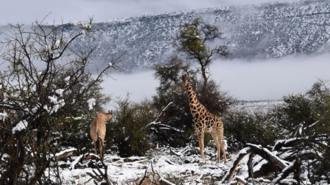 ถึงกับงง! พายุหิมะประหลาดตกในแอฟริกาใต้ ยีราฟ ช้าง และละมั่ง ยืนหนาวขาสั่น
