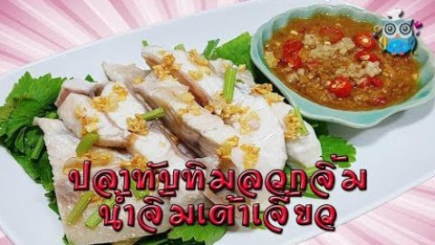 ปลาทับทิมลวกจิ้ม น้ำจิ้มเต้าเจี้ยว เครื่องปรุงและวัตถุดิบ 1.เนื้อปลาทับทิม 100 กรัม 2.น้ำซุป 3.ข่า ตะไคร้ ใบมะกรูด 4.ขึ้นฉ่ายหั่นท่อนสั่นๆ 5.กระเทียมเจียว เครื่องปรุงน้ำจิ้ม 1.เต้าเจี้ยว 3 ช้อนโต๊ะ 2.กระเทียม 4 กลีบ 3.พริกขี้หนูซอย 4.ขิงสับ 1/2 ช้อนโต๊ะ 5.รากผักชี 2 ราก 6.ข่าซอย 1/2 ช้อนโต๊ะ 7.น้ำมะนาว 2 1/2 ช้อนโต๊ะ 8.น้ำตาลทราย 1 1/2 ช้อนโต๊ะ วิธีทำ 1.ล้างเนื้อปลาหั่นเป็นชิ้นหนาประมาณ 1 นิ้ว พัก.. ดูเพิ่ม
