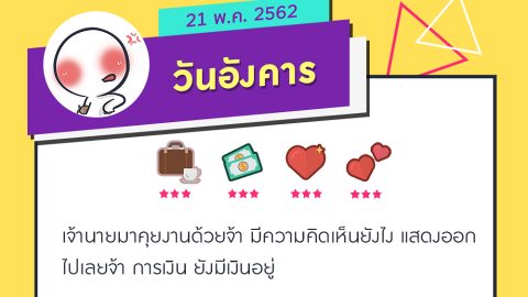 ดวงรายวันที่ 21 พ.ค. 62