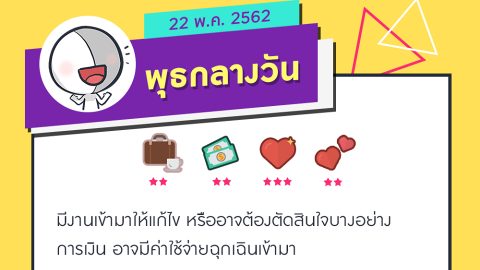 ดวงรายวันที่ 22 พ.ค. 62