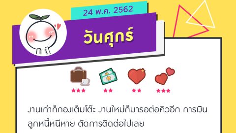 ดวงรายวันที่ 24 พ.ค. 62