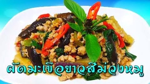 ผัดมะเขือยาวสีม่วงหมูสับ