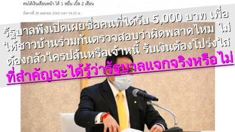 รัฐบาลพึงเปิดเผยชื่อคนที่ได้รับ 5,000 บาท