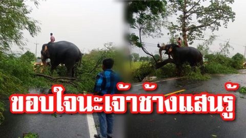 สุดยอดภาพความประทับใจ จาก "เจ้าช้างแสนรู้" ช่วยเคลียร์ต้นไม้ที่ขวางถนน หลังโดนพายุถล่ม