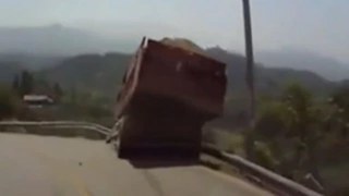 วินาทีชีวิต!! รถบรรทุกหิน เสียหลักแหกโค้ง ตกเหวพลิกหลายตะหลบ(มีคลิป)