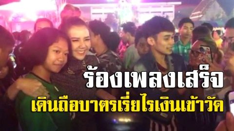 สวยทั้งกายทั้งใจ จ๊ะ ร้องเพลงเสร็จ เดินถือบาตรเรี่ยไรเงินเข้าวัด (คลิป)