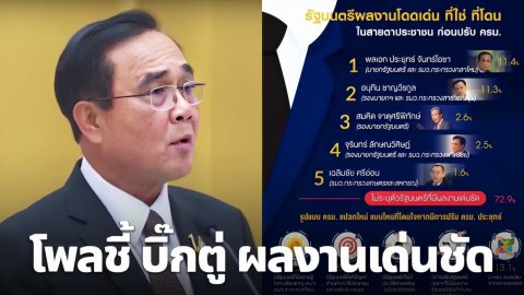 ชาวเน็ตว่าไง? ผลโพลชี้ บิ๊กตู่ ผลงานเด่นชัดเป็นที่ชื่นชอบมากที่สุด ส่วนรัฐมนตรี ไม่เห็นผลงาน