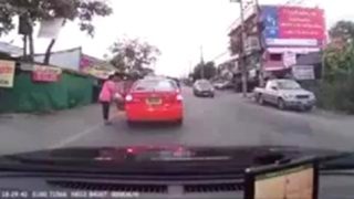 เกือบแล้ว !! วินาทีหญิงรายนี้ข้ามถนน เกือบโดนรถชน เฉียดนิดเดียวจริงๆ (ชมคลิป)