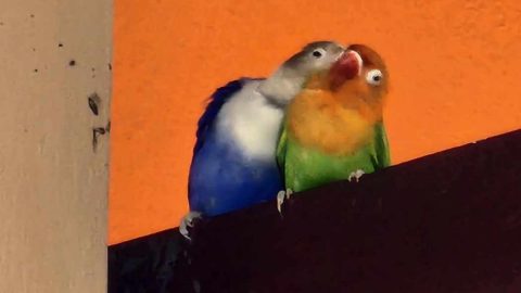 สัตว์โลกน่ารัก : ชาวเน็ตแห่ให้กำลังใจ นกแก้วคู่สีแตกต่างกัน แต่น่ารักมากๆ ร่วมกันทำรังจับคู่อยู่ด้วยกัน