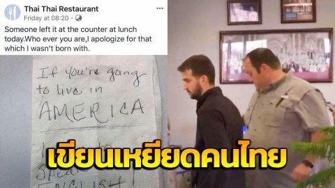 หนึ่งข้อความจากคนใจร้าย ก่อเกิดพันข้อความจากคนใจดี 1- ร้านอาหารไทยชื่อ "Thai Thai Restaurant" ตั้งอยู่ที่เมืองลับบ็อค รัฐเท็กซัส ประเทศสหรัฐอเมริกา เจ้าของเป็นคนไทยที่มาตั้งรกรากอยู่ที่นี่และเปิดร้านมานานกว่า 30 ปีแล้ว 2- วันที่ 21 พ.ย. 62 มีลูกค้าคนหนึ่งมาทานมื้อกลางวันที่ร้าน ได้ยินเจ้าของร้านและพนักงานคุยกันเป็นภาษาไทยแล้วเกิดความไม่พอใจ 3- หลังทานเสร็จ ลูกค้าคนดังกล่าวได้เขียนข้อความลงบนกระดา.. ดูเพิ่ม