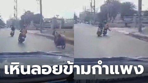 อุทาหรณ์! หนุ่มขี่แซงขึ้นไม่ทัน พุ่งชน เหินลอยข้ามกำแพง