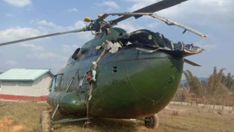 เฮลิคอปเตอร์เมียนมาตก ขณะนำทูตทหาร รวมทั้งประเทศไทยดูผลงานยึดยาเสพติดลอตใหญ่ เจ็บระนาว