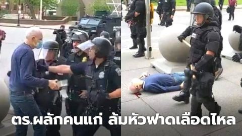 ตำรวจปราบจลาจลของมะกันสุดโหด ผลักคนแก่เต็มแรงจนเซถลาล้มหัวฟาดพื้น