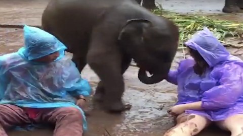 โดนลูกช้างแกล้ง ดูหน้าแล้วจะสงสารหรือมีความสุขด้วยเนียะ