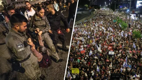 (แปลจากรายงานของสำนักข่าวอัลจาซีราที่รายงานจากนอกอิสราเอลเนื่องจากถูกรัฐบาลอิสราเอลแบน) ประชาชนชาวอิสราเอลเรียกร้องความรับผิดชอบจากการดำเนินการที่ผิดพลาดของรัฐบาล การประท้วงเหล่านี้เสียงดังขึ้นเรื่อยๆ และมีกลุ่มผู้ประท้วงขนาดใหญ่ขึ้นเรื่อยๆ ทุกสัปดาห์ ผู้ประท้วงและครอบครัวของเชลยชาวอิสราเอลรวมตัวกันที่กองบัญชาการทหาร Kirya ในเมืองเทลอาวีฟ [ภาพ:Abir Sultan/EPA-EFE] ผู้ประท้วงชาวอิสราเอลหลายพันคนรว.. ดูเพิ่ม