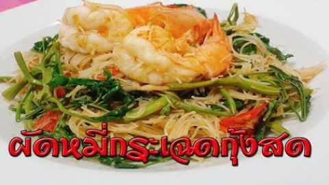 ผัดหมี่กระเฉดกุ้งสด